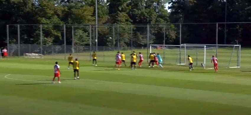 Ο τρόπος όμως που το δέχθηκε (τολμώ να πω ότι) δεν επιτρέπεται. Δύο (συνεχόμενα) κόρνερ. Ίδια ακριβώς εκτέλεση κόρνερ, από το ίδιο σημείο (από δεξιά όπως αμυνόταν η ΑΕΚ), ίδια ακριβώς στόχευση (στο πρώτο δοκάρι), με (σχεδόν) ίδιες κινήσεις από τους ποδοσφαιριστές της Beerschot. Και όλα αυτά σε χρονικό διάστημα μικρότερο του ενός λεπτού.